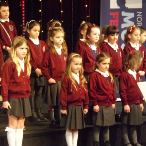 For the fifth time, our combined Infant and Junior choir went over to the King's Centre in Norwich to take part in the Norfolk County Music Festival to sing two songs. The children performed superbly coming away with a judgement of Highly Commended Plus from the adjudicator. A very proud moment for the Federation, the pupils, Mrs. White-Joubert and all our spectators and helpers who came to support the occasion.